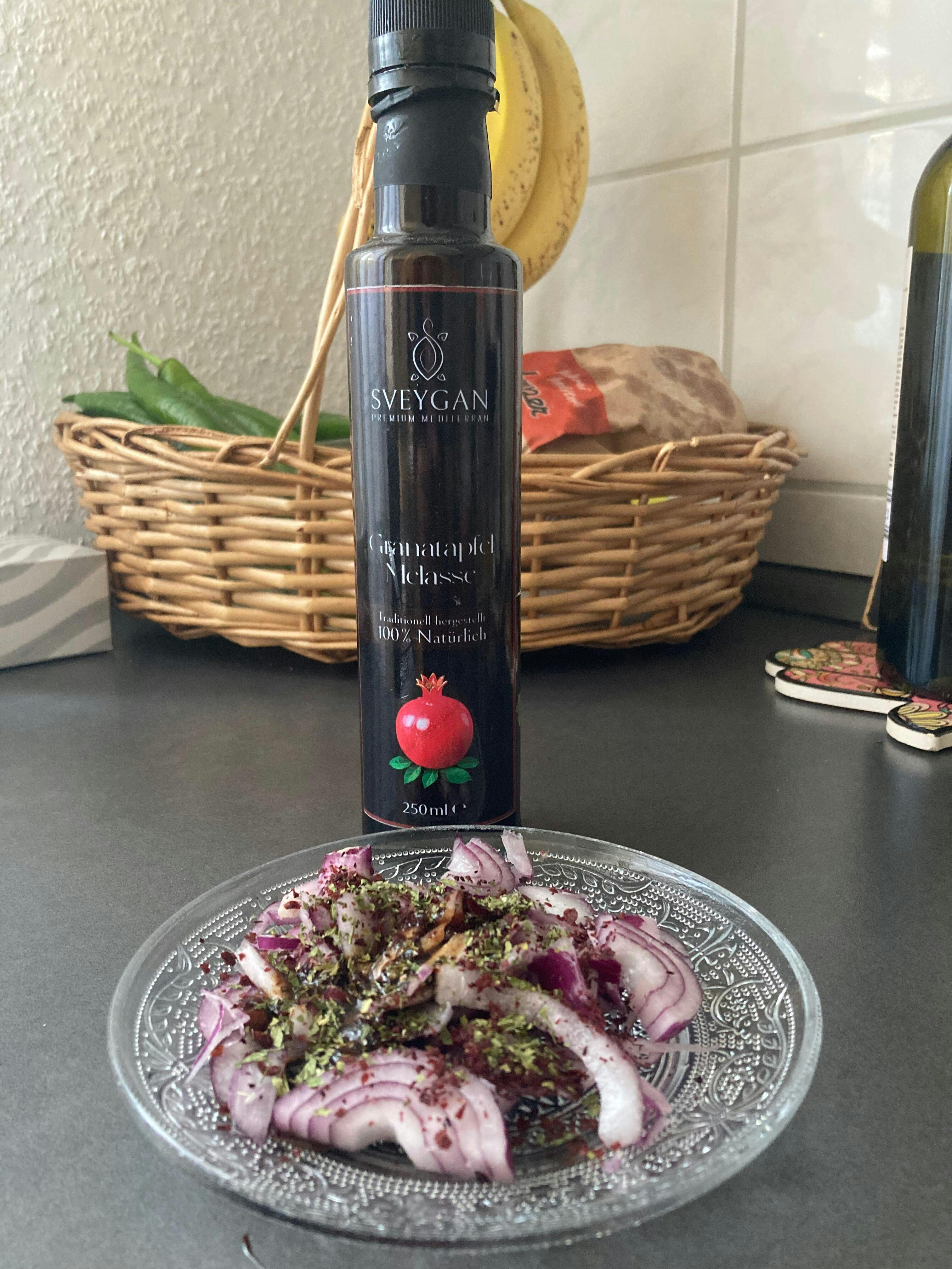 Unsere Granatapfelmelasse wird aus 100 % Granatäpfeln gewonnen, die aus der renommierten Region Hatay in der Türkei stammen – bekannt für ihre intensiven und aromatischen Früchte. Die Melasse wird traditionell hergestellt, um den vollen Geschmack und die natürliche Qualität zu bewahren. Frei von Zusatz- und Konservierungsstoffen überzeugt sie mit einem unverwechselbaren süß-sauren Aroma. Sie ist ein vielseitiger Begleiter in der Küche: Verfeinern Sie Salate wie Rucola, geben Sie Marinaden eine besondere Note oder nutzen Sie sie für kreative Desserts. Ein authentischer Genuss, der orientalische Tradition und moderne Kulinarik vereint.